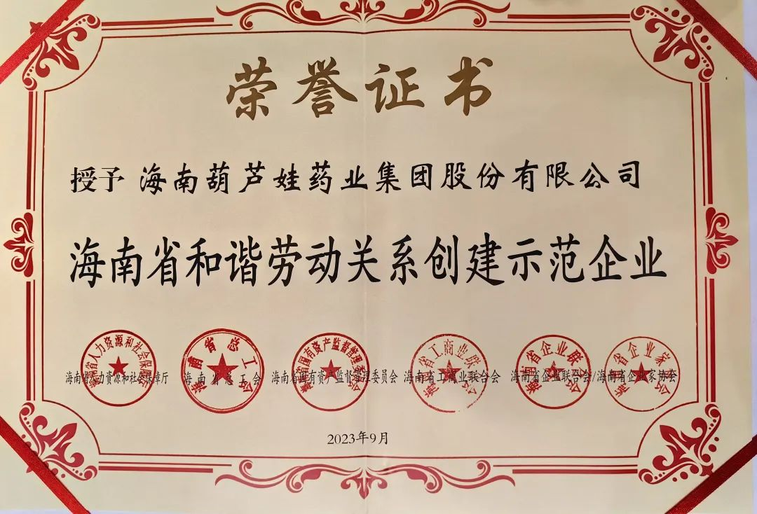 极速3D药业集团获评“海南省和谐劳动关系创建示范企业”