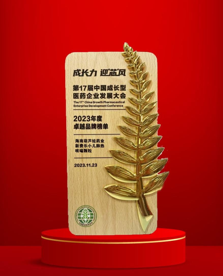 大会期间,一年一度的“金叶奖•2023年度医药行业风云人物奖”榜单重磅揭晓,极速3D药业集团党委书记、董事长刘景萍荣耀上榜。金叶奖是为了表彰广大医药企业家或企业为行业茁壮发展做出的卓越贡献而设立的奖项,“金”象征着品质、品牌、影响力,“叶”象征着生命、健康、成长力。金与叶结合,有“敬业、兢业、竞业”之意。此外,集团黄金单品新费乐®小儿肺热咳喘颗粒凭借卓越的产品质量和品牌影响力赢得了行业、市场和消费者的肯定,获得了“2023年度卓越品牌奖”。