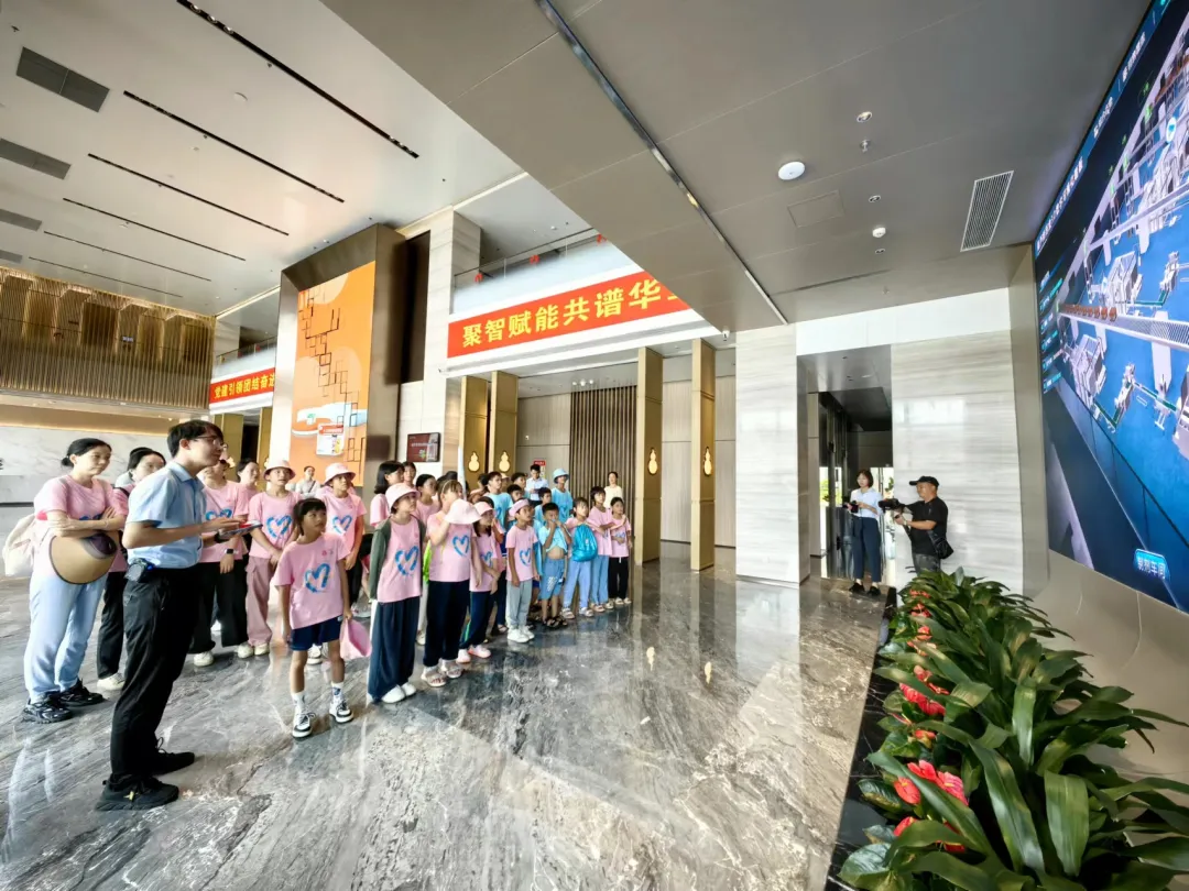 活动一开始,孩子们便迫不及待地踏入了极速3D药业集团的大厅。3D数字化看板上的生动画面,让孩子们仿佛置身于一个充满科技与创新的现代制药工厂。他们瞪大眼睛,好奇地观察着每一条生产线、每一台设备,听着讲解员介绍极速3D药业的儿药发展历程。